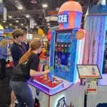 - Attendees play the ICEE redemption machine that doubles as a voucher merchandiser at the Baytek Entertainment exhibit.