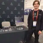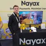 - Paul Drutch highlights the VPOS reader at the Nayax Ltd. exhibit.