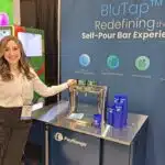 - Sarah White shows the BluTap self-pour technology at the PayRange LLC exhibit.