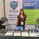 - Ashley Wright offers information on automated payment services at the Service First Processing exhibit.