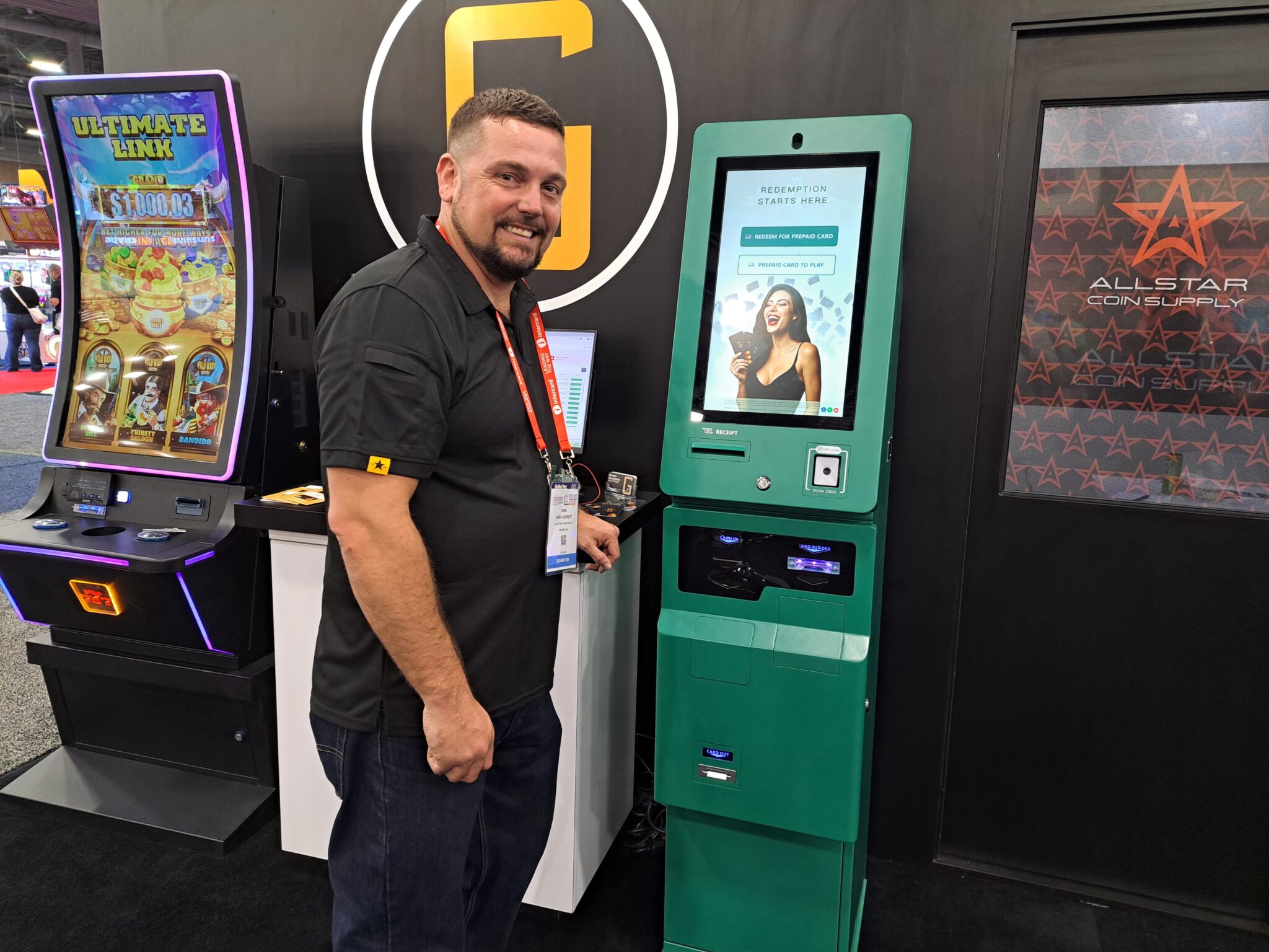 All Star Coin Supply, a supplier of gaming, ATM and amusement equipment, showcased its redemption terminal featuring a cash or gift card customizable design and real-time cloud service options for monitoring machine activity.