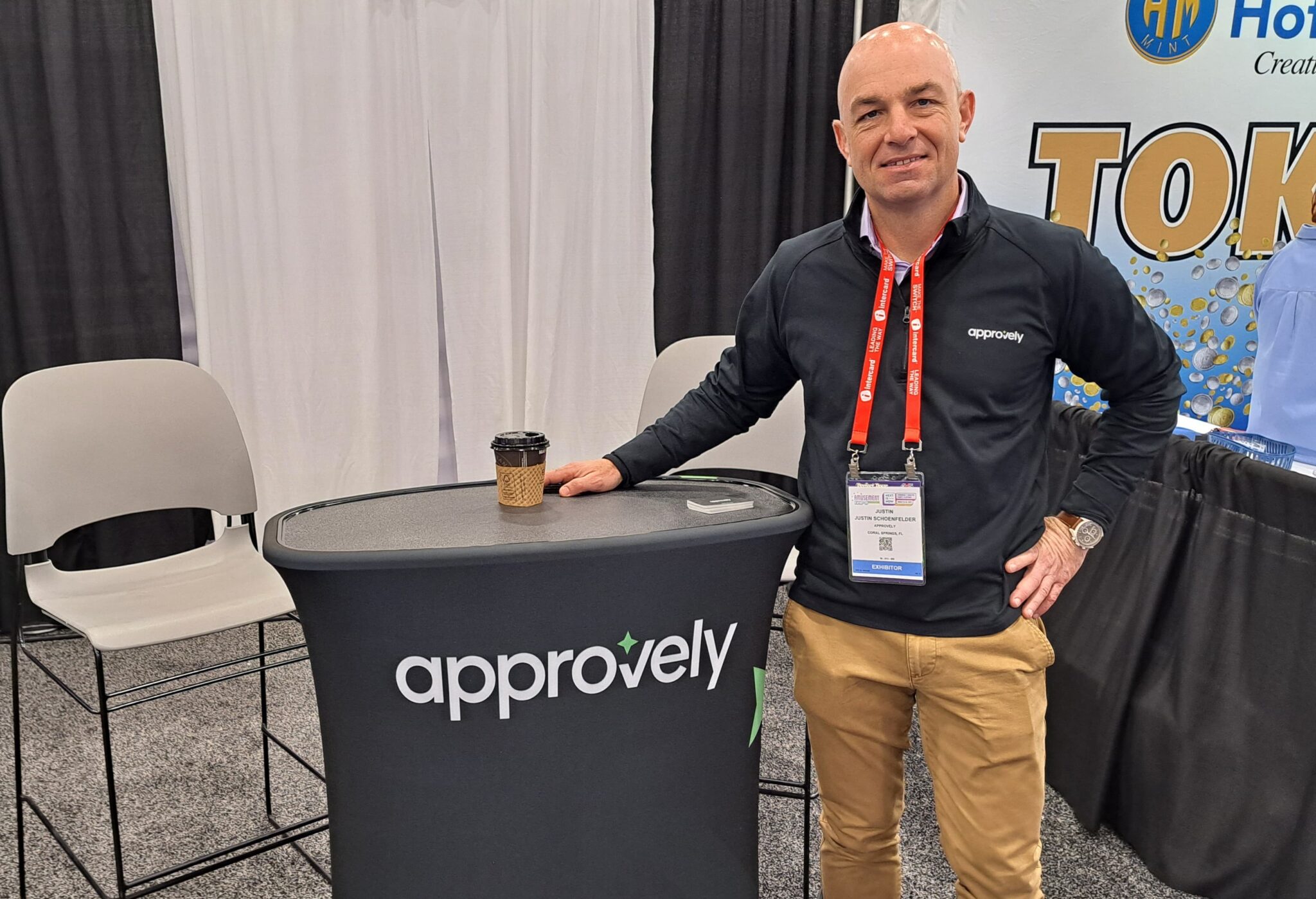 - Justin Schoenfelder describes fraud protection technology at the Approvely exhibit.