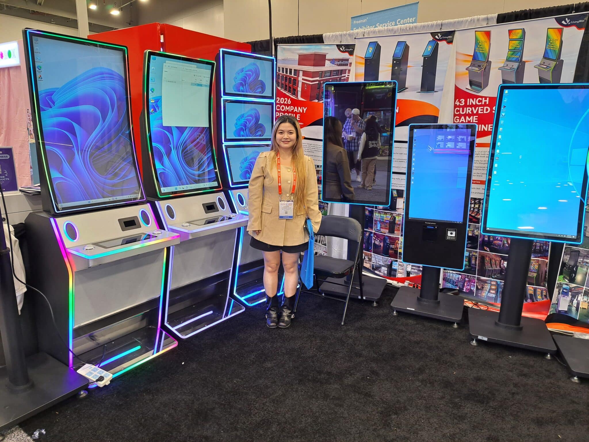 Chengdu Usingwin Technology Co. Ltd., a manufacturer of self-service kiosk integration products, displayed its gaming and redemption kiosks.