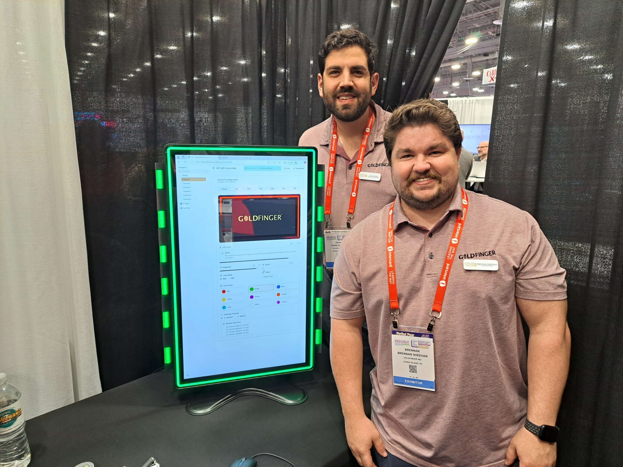 - Evan DeVine and Brennan Sheehan discuss the LED controller at the Goldfinger exhibit.