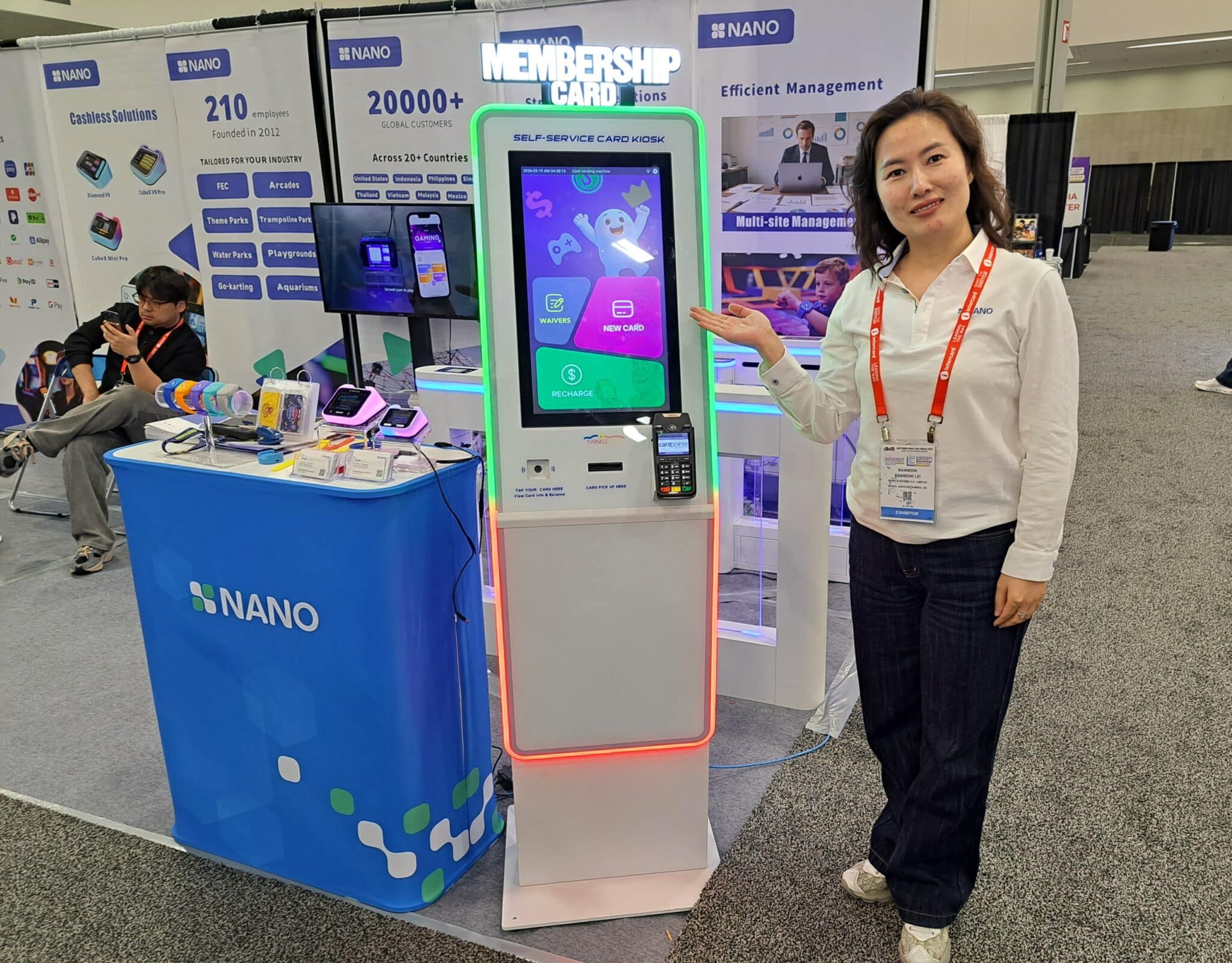 - Rainbow Lei showcases the Cardmaster V8 kiosk that allows guests to register and buy new membership cards at the Nano exhibit.