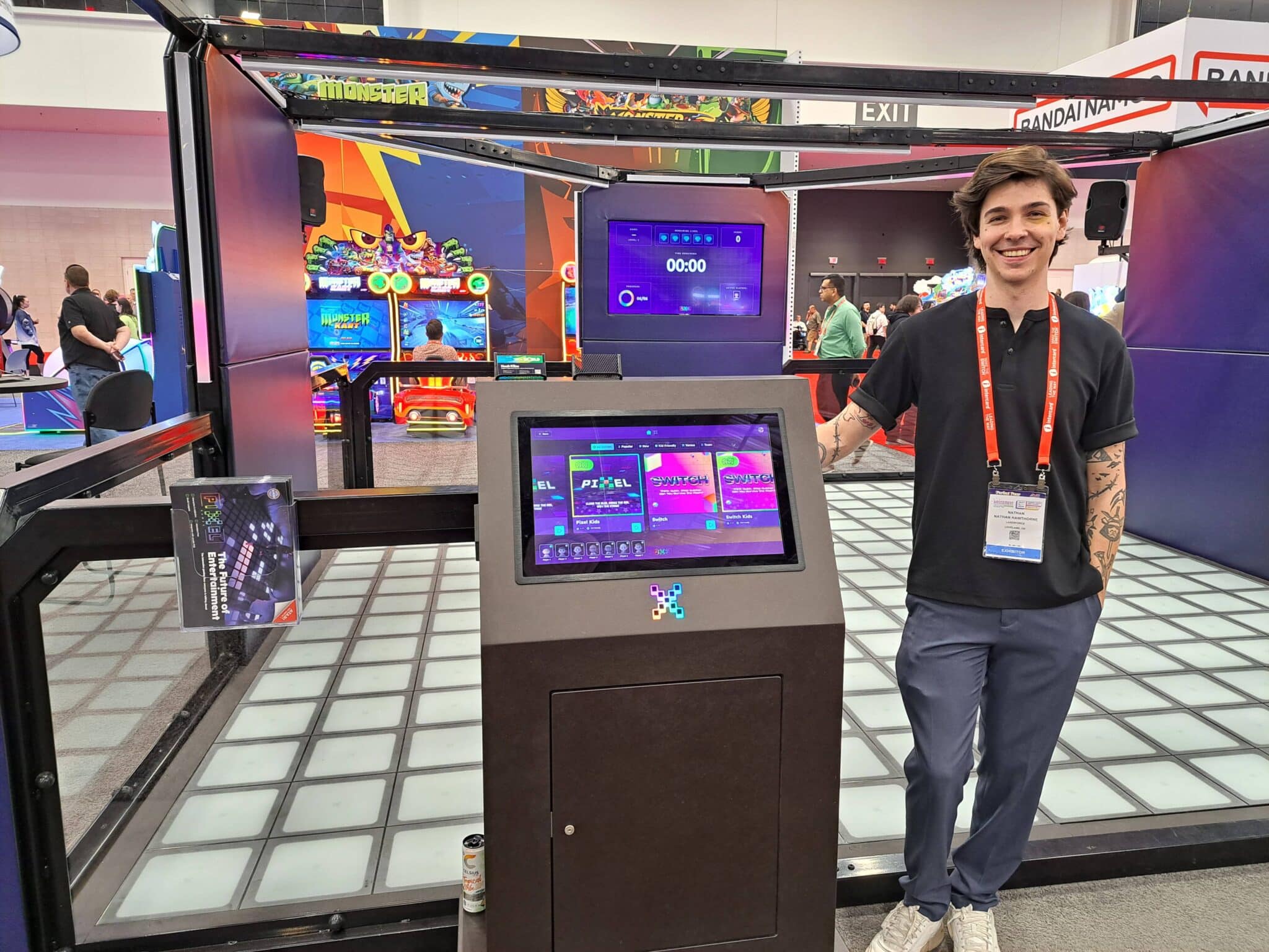 - Nathan Hawthorne introduces the new interactive gaming floor at the Pixel Games exhibit.