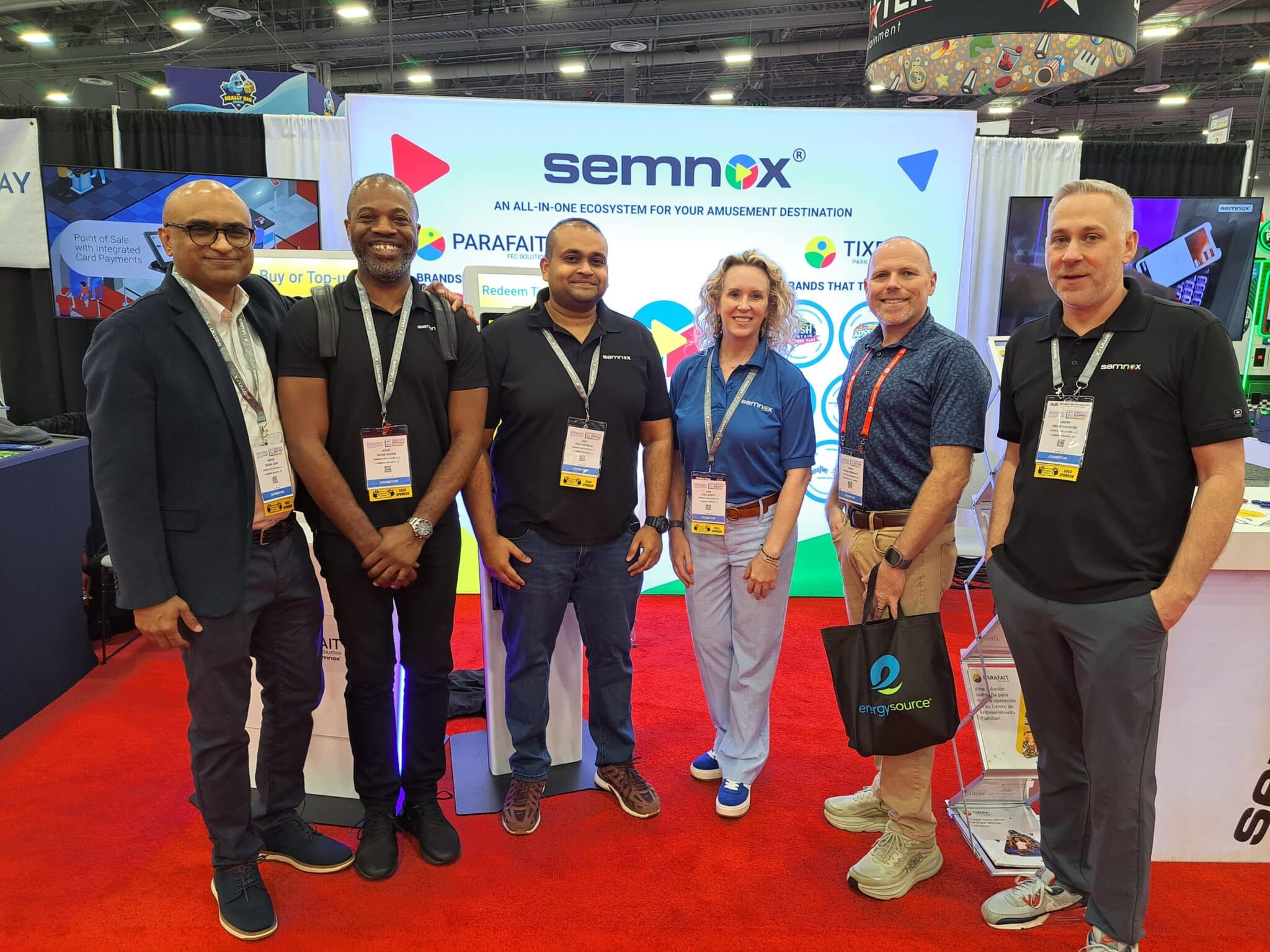 - Showcasing the Parafait solutions at the Semnox Solutions Pvt. Ltd. are Bepin Jose, Uche Ehiem, Geo Thomas, Lisa Scott, Jason Reinblatt and Drew Parow.