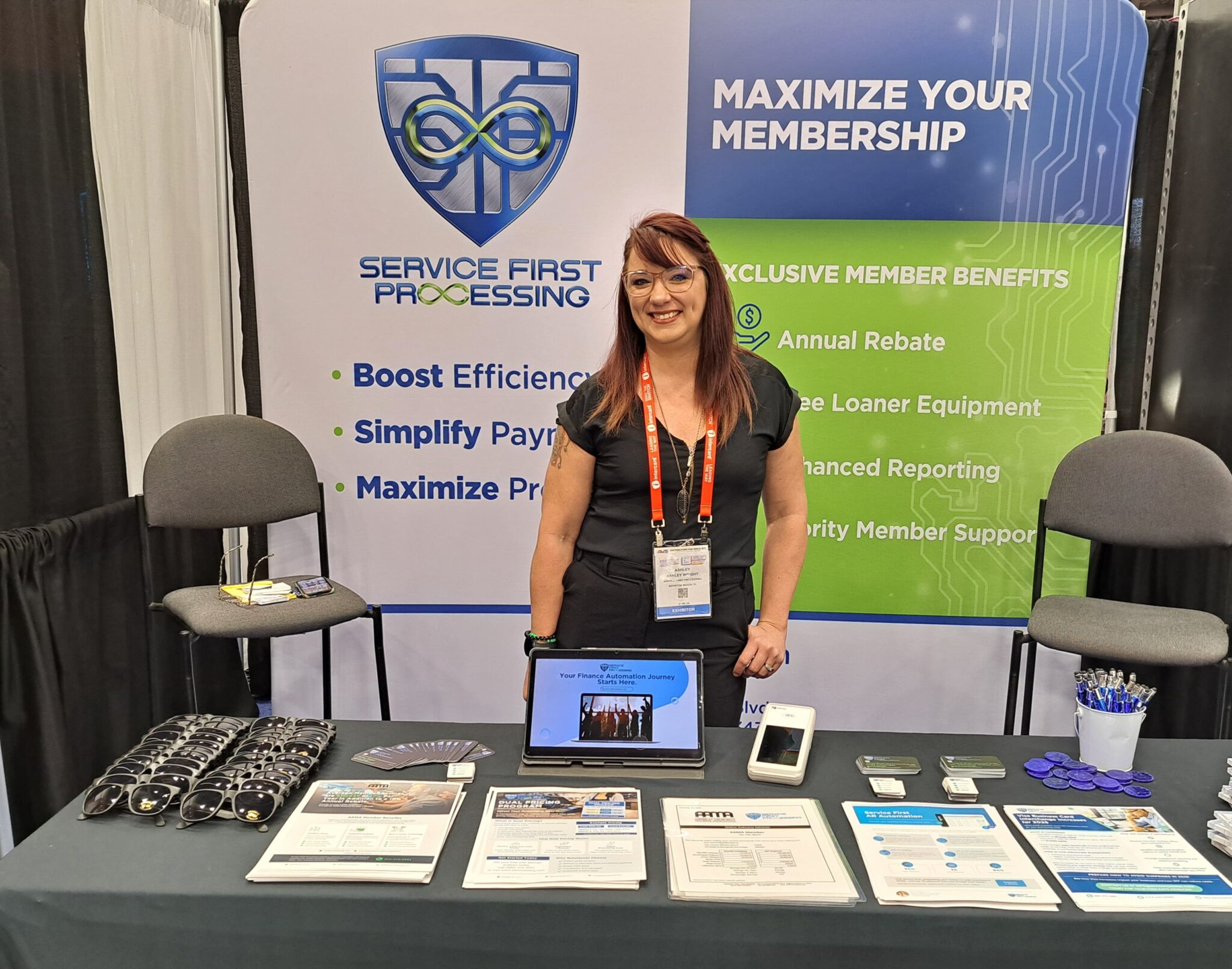 - Ashley Wright offers information on automated payment services at the Service First Processing exhibit.