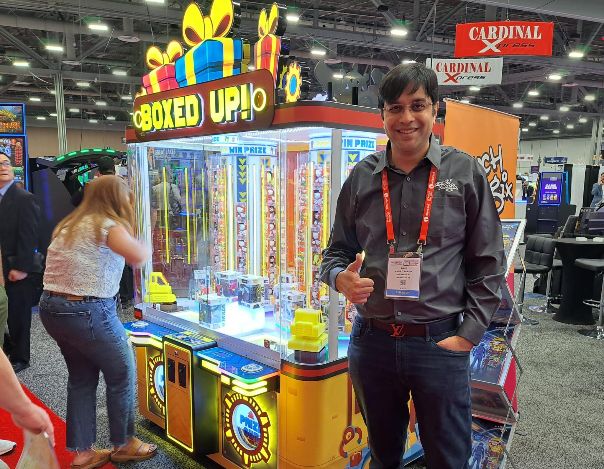 TouchMagix, a manufacturer of immersive games, introduced its “Boxed Up!” skill based game to win prizes. Players try to line the mini forklifts to the towers to retrieve boxed prizes. The player presses a button to stop the tower from rotating to allow the mini forklift to move into position to scoop the boxed prize from its compartment. The forklift then moves the prize to the delivery chute to allow the player to receive it.