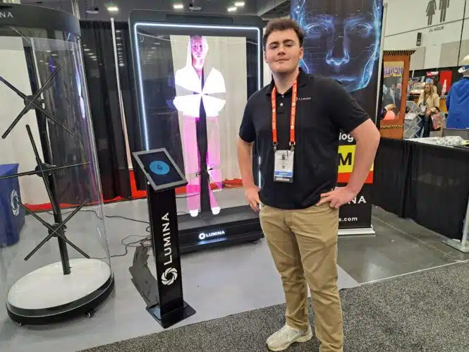 - Henry Lober introduces interactive AI avatar hologram at the Lumina exhibit.