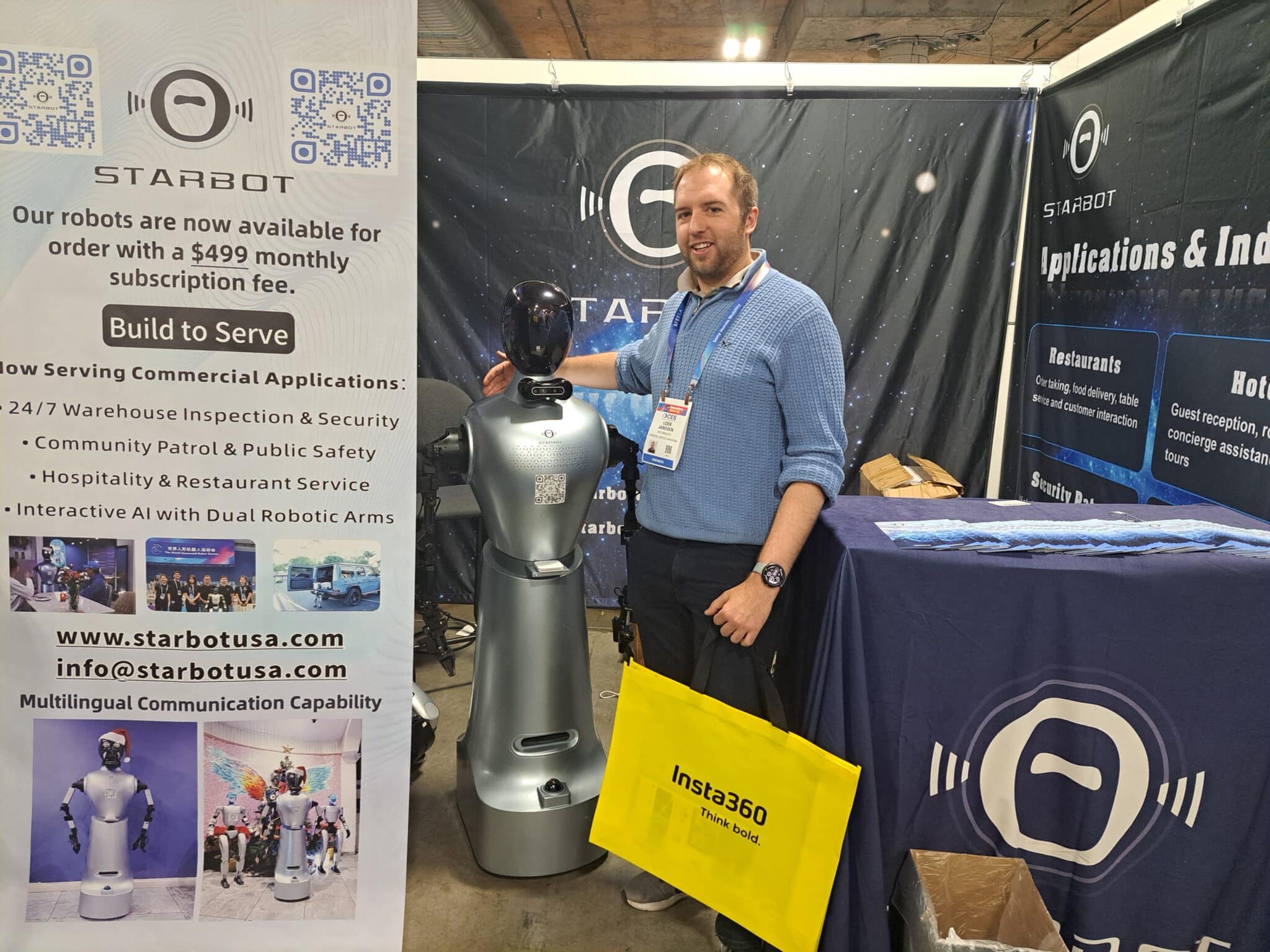 - Loek Janssen of XYZ Reality, a London based augmented reality company, checks out the humanoid robot at the Starbot Inc. exhibit.