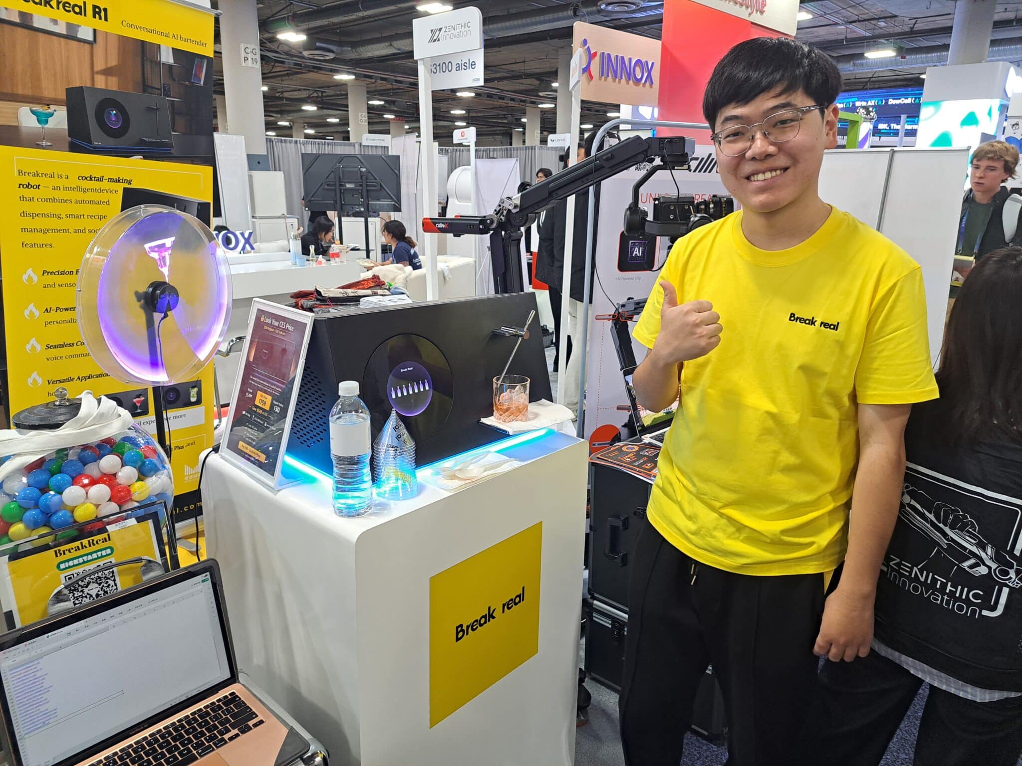 - Wenxuan Wu presents the Breakreal R1 AI-powered countertop cocktail machine at the Surreal Nexus Technology Inc. exhibit.