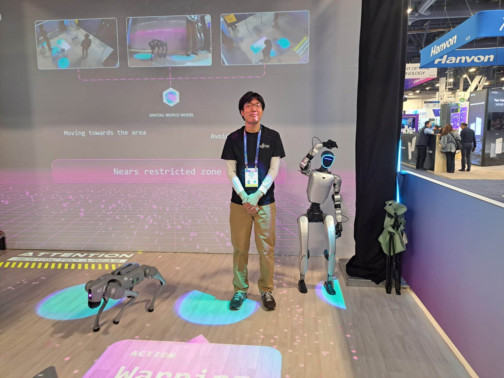- Narishige Abe demonstrates robots in the Fujitsu spatial world model.