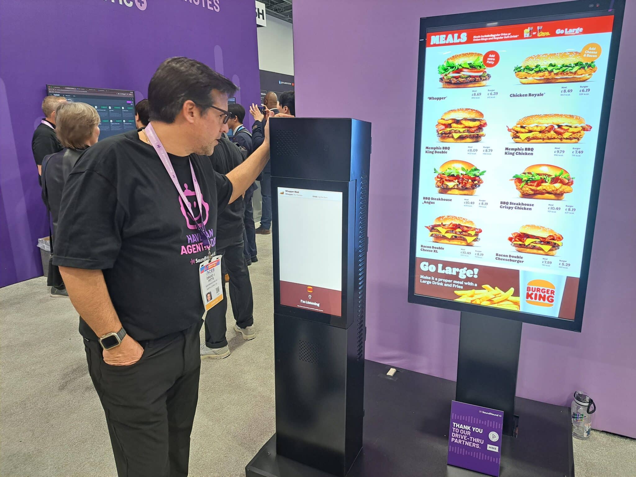 - David Pitts demonstrates the Dynamic Drive-Thru ordering at the SoundHound exhibit.