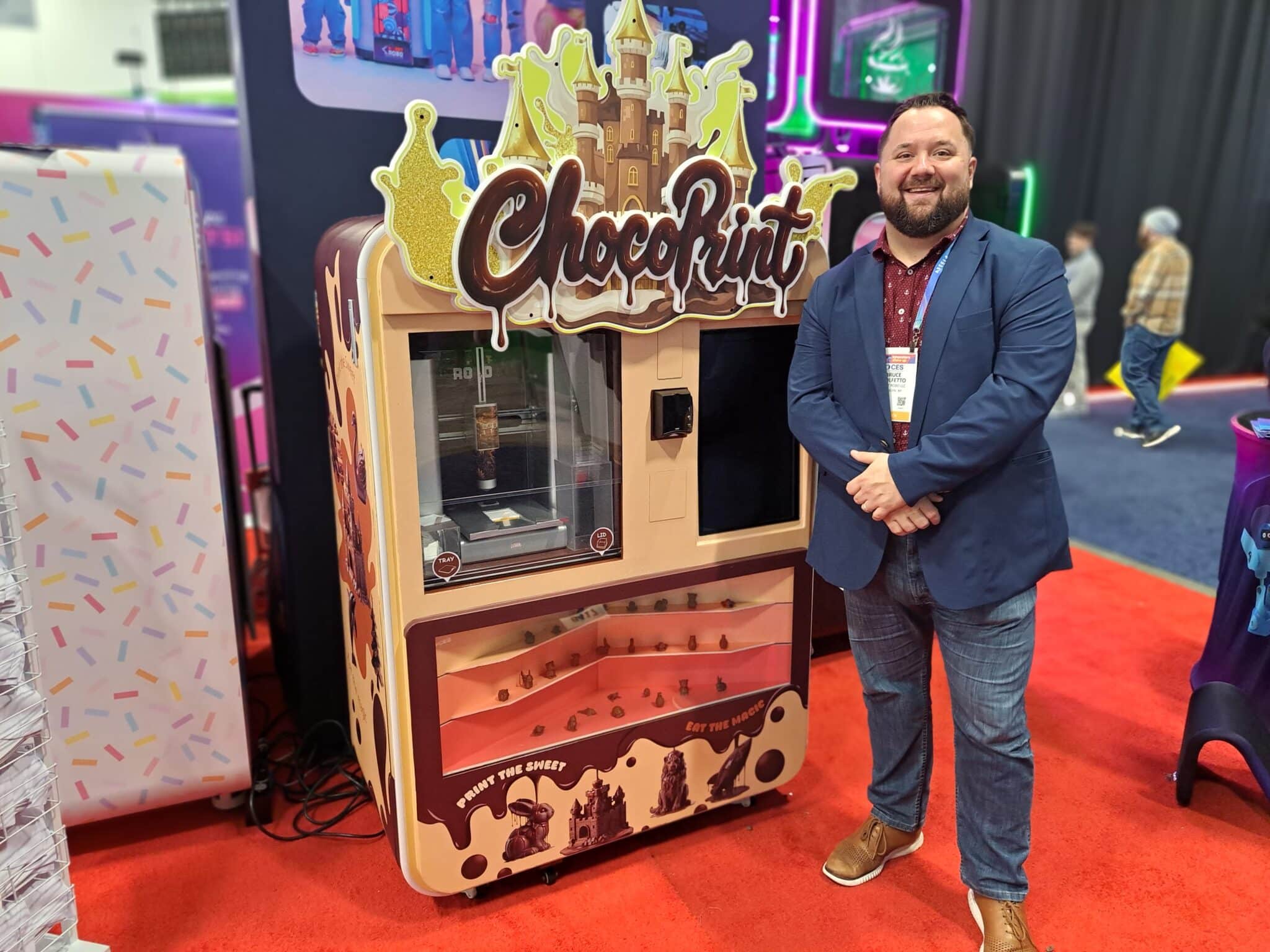 - Bruno Moletto presents the Chocoprint chocolate vending machine at the Sweet Robo exhibit.