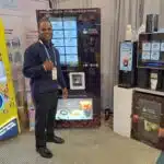 - Elliott Campbell presents the MCF Vending Pro coffee machine at the AETI Global exhibit.