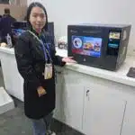 - Ivy Zhang presents the Flex 3 Android-based, self-service kiosk at the Sunmi exhibit.