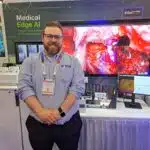 - Hamilton Yeager presents a display monitor demonstrating the use of AI in surgery at the Advantech exhibit.