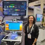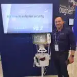 - Juan Pablo Miranda presents the TE Air e5M wireless handheld ultrasound device at the Mindray North America exhibit.