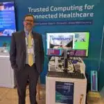 - Seamus Shu presents a medical panel PC for healthcare applications at the Axiomtek Co. Ltd. exhibit.