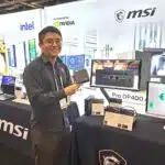 - Hao Yu shows the Cubi NUC desktop at the MSI exhibit.