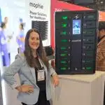 - Tina Wilder presents a power charging station at the Zagg Mophie exhibit.