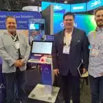 - Bill Nulf and John Dittig of MicroTouch join Daniel Olea at the Olea Kiosks exhibit.