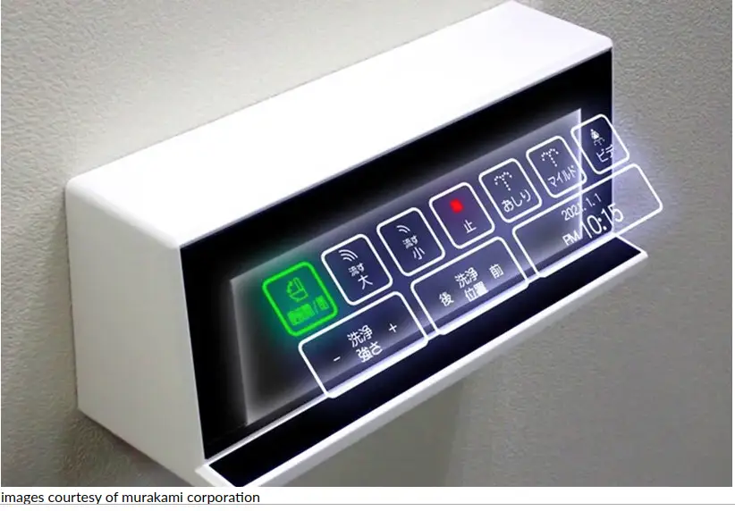 called floating pictogram technology, this technology replaces the panel of buttons with a virtual one that appears like a hologram. this allows users to operate the toilet through floating images generated by an infrared sensor that can detect a human finger coming close to it. this means that there is no need to touch any surface, making it even more hygienic than before.